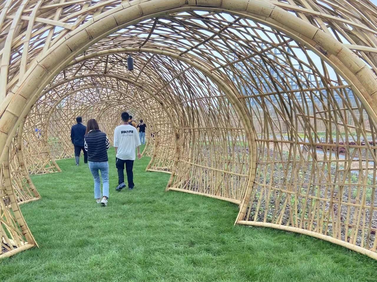 嘉兴·蔬彩园有机更新竹编廊架,位于浙江省嘉兴市秀洲区嘉兴经济技术开发区长水街道槜李路南侧,三环南路北侧,铁路西侧,长水塘东侧。受检结构为八栋的单层的竹编廊架。该结构建于2022年3月,用于游客休息、走廊等。房屋总建筑面积约为1490.81㎡,基础采用混凝土基础,埋置在地下60cm处,基础表面上覆盖5cm填土压实。经一系列测量复核,该竹编廊架结构基本满足正常使用条件的下安全要求。